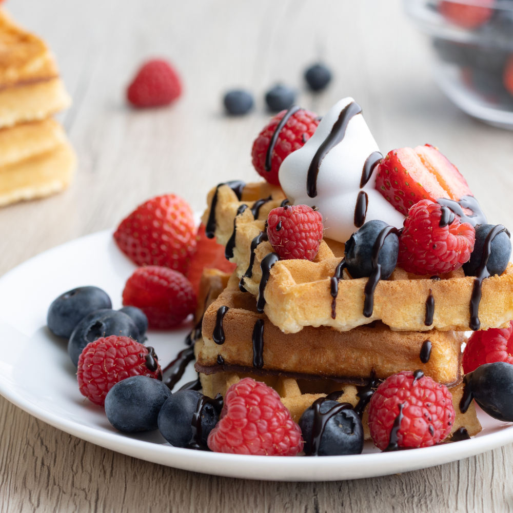 Crispy Waffles, Pure Maple Syrup, Scrambled Eggs, Bacon, Turkey Sausage, Breakfast Potatoes, Sliced Fresh Fruit FIT, * Egg Whites and Turkey Bacon Available Upon RequestMinimum 10 guests